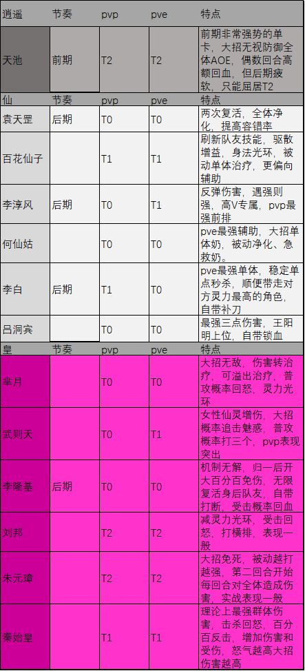 仙灵强度榜—仙皇和逍遥阵营