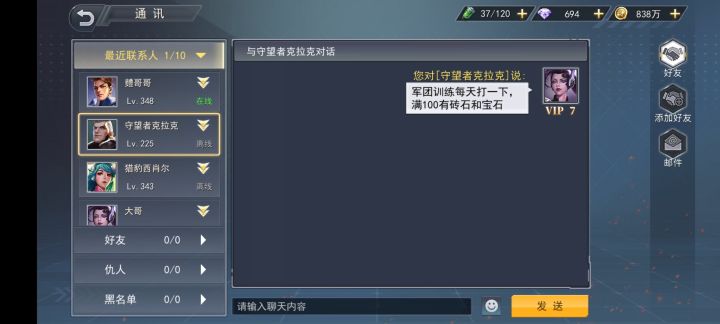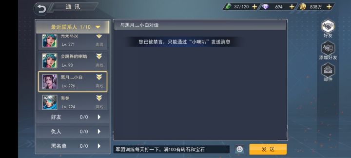 聊天系统真牛逼,发消息让军团的人每天打下军团训练。没一个敏感字,直接给我禁言了。😄㊗早上关服