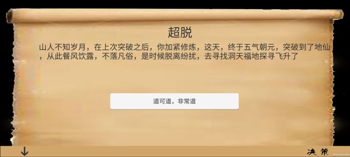 修仙攻略1、看广告拿南华真经2、反复sl保障不受伤(地主选冲杀赌脸不受伤、攻城选亲兵、反叛选视而不见、战友死亡选买药免得掉心情)3、尽可能获得丹药(地主选寝室概率拿药、破城选药房、修整选黑市概率能触发修仙)4、选择栖身之地有概率触发桃花源记,选择进村交谈可以体质+3