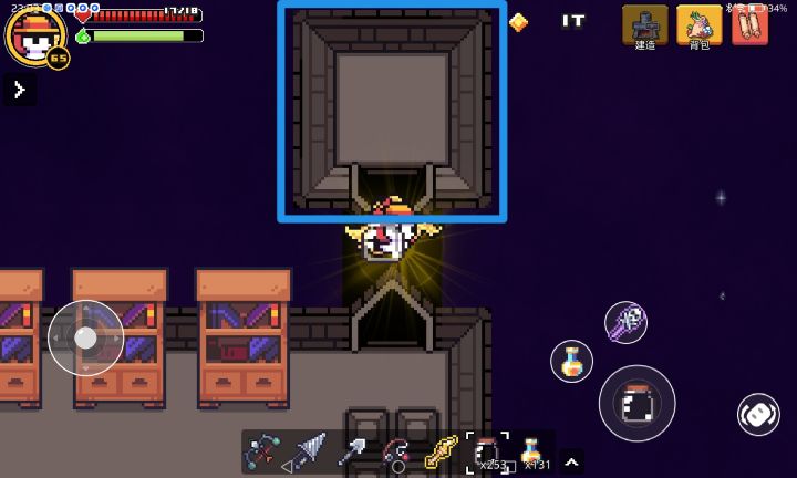 必要物品必要神器如图,没有盾的话容易直接暴毙一把弓(至少要宇宙弓)最好有无限弹药,没有就自己带药水:曼陀罗,巨龙神油,闪雷回血物品也要带,有时候血吸不上来100多个机器人-鞋子越高级越好,药水还可以多带一个状态好运,打高层数的开局先拉史莱姆用弓箭直接秒,这套装备可以轻松打到虚空100层