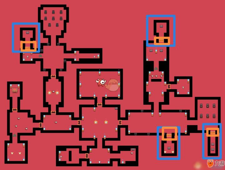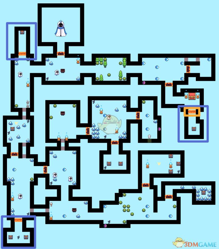 本帖主要指出神庙内秘密房间的位置与开启方式,神庙外内容不作解释🙂 上图蓝框标记位置为秘密房间;红/橙框标记位置为隐藏墙/假墙(这些墙面需要用火焰法杖/恶魔卷轴发射火球炸毁,炸弹等爆炸物亦可) 请务必注意红/橙框标记位置,在秘密房间收集中这些房间常常被疏漏😨🔸图1 上古洞窟(沙漠神庙) -共3个秘密房间,隐藏墙1处🔸图2 骷髅迷宫 -共3个秘密房间,无隐藏墙🔸图3 水晶洞窟 -共3个秘密房