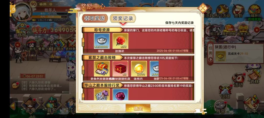 我在记录里翻了只有两个看好奖励,一样给南斗星发过一份,希望下次紫禁之巅能修好