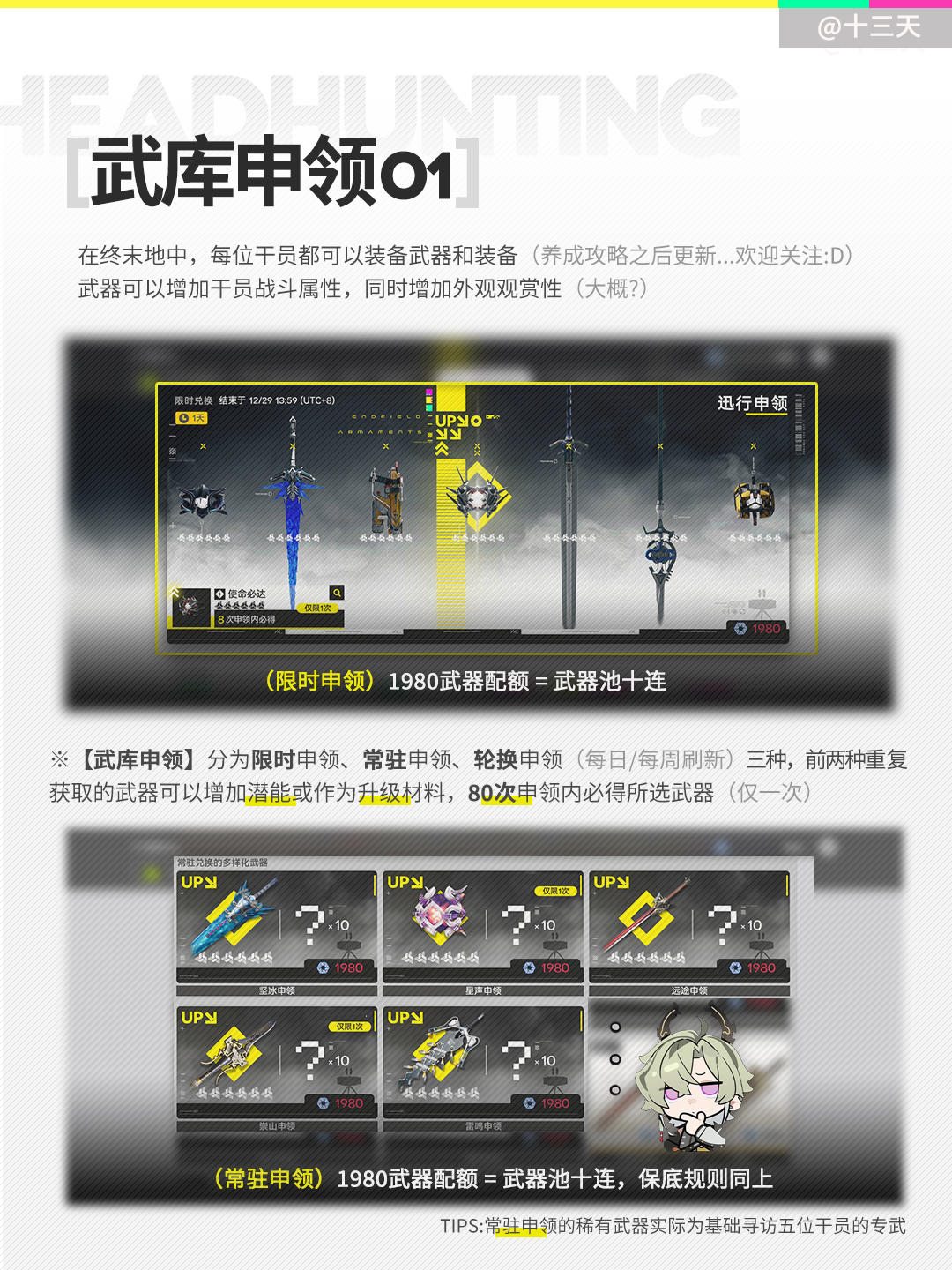 ...产了终于产了博..管..大家好!我是爆肝攻略中的天(@_@;)有博士想看终末地的寻访机制说明和本家之间的道具转换,今天为大家奉上(。・・)ノ▼// 本篇内容包含①寻访凭证②基础寻访③启程寻访④特许寻访⑤武库申领⑥配额交易所以及其他道具的转换说明,大家记得仔细看哦!————————————▼// 若内容对你有帮助,请多多♡支持▼// 创作不易,禁止抄袭以及任何转载和搬运▼/