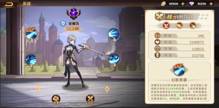 在《云中幻想》中,英雄被分为了六大种族,他们是人族、蛮族、精灵族、亡灵族、神族和魔族,种族之间相互克制。为了让大家了解我们的英雄技能和特点,小编将会分种族给大家细细道来,那么就从人族开始吧。人族的神话英雄一共有七位,五大职业都包含其中,同时人族也是非常适合新手期的英雄阵容,那么其中谁是最值得培养的呢?今天小编就带大家更加深入的了解我们人族的七位英雄。安娜苏:刺客定位,突进、输出。首充6元可得