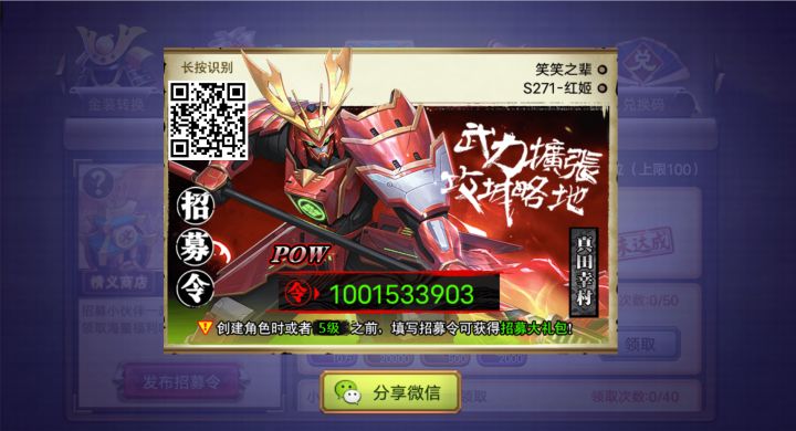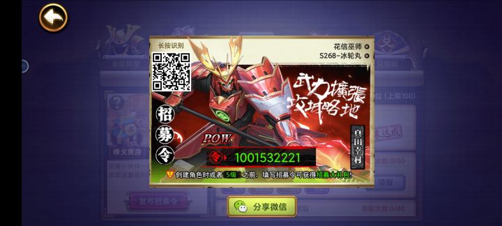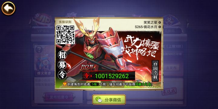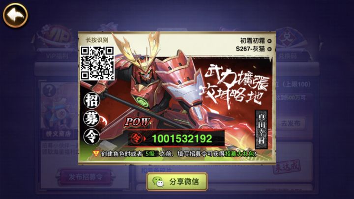 礼包码、招募令五级前使用!招募令:1001524461礼包码:day6king(一套装备)vip666