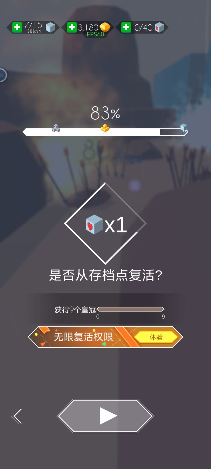 很久没玩回坑体验了一下,新关卡视觉听觉质量很不错之外,广告跳脸太频繁了,甚至自动跳转出去。。。另外这个开头看广告的免费复活3次道具根本用不了,关卡结束无法复活直接回到目录主界面,再点进去关卡还得重看一遍。。。受不了了