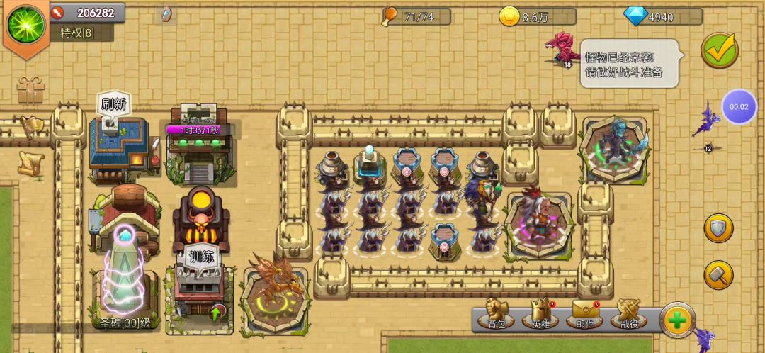 一、礼包码是:sorry321、tr1086。 优先进群,群里面还有每周密令和好评码,不定时各种活动,一大波代金券。 二、关于广告 广告有点长,而且点到可能会下载东西,但是,这个游戏可以不看广告玩,任何东西都可以慢慢积攒,反正也是单机游戏,没有竞争,不怕会掉队,完全凭借自己的喜好,这个很良心,代金券光每周密令也是不少的。 三、关于代金券 1.代金券该怎么花,长久玩钻石月卡必备其余看自身需求(英雄上场上限为3提前考虑好阵容思路,材料是十分稀少的,难以做到给养多个)。 2成长基金可以等高级再买。 3.特权等级升到5级/8级即可,5级开启战斗2倍速,8级每日领金色碎片。每升级到一个阶段的特权等级要记得领奖励,不要一次升太多级。 4.怎么得代金券?每20分钟左右会生成障碍,清除可得到藏宝图,使用藏宝图有平均40%+概率得到,每日任务,活动,兑换码等等也可以得到。 四、关于游戏,游戏本身是一个塔防游戏,城墙和建筑可以组成路径吸引怪物,注意,空怪是不会按照路径的,陆地上的怪物也是要受到攻击,拉取仇恨才会按照你设置的路径走,路径不能有死路,这样子怪物会乱打,甚至会卡墙,特别是飞行的英雄,如果在墙上攻击,吸引仇恨,有概率会让陆地野怪卡墙进来。 推荐刷怪的时候可以直接开十来波陆地的,近战与天空的分开刷,也可以进战略,刷新野怪群。 或者可以拿一个小地方出来,利用防御塔等区域刷怪如下图,这样子的。 新手可以优先养冰魔与兽王,冰魔需要智慧装减CD,前期基本秒杀,兽王可以来吸血装。 五、关于装备,高等级可以触发低等级的效果,比如智慧2可以触发智慧1的效果,所以你可以慢慢替换,换好的词条。前期的装备主要看鉴定,比如智慧,毁灭,这些,不太需要看数学,后期装备再慢慢肝属性。 六、关于开局,开局买特惠宝箱,换成兽王的,把特权拉到五,然后刷小怪,升级主城,优先升级主城,兵营啥的先不管,高级再来慢慢升级,箭塔,农场,城墙,酒馆这些升级一个,跟着主城等级就好。活动都随机的,因此可以刷个消费的活动比较好,前期大消费刚刚好。 七、兵种推荐弓箭兵,后面换小法师。刷怪 刷副本怪的时候推荐换成近战兵。
