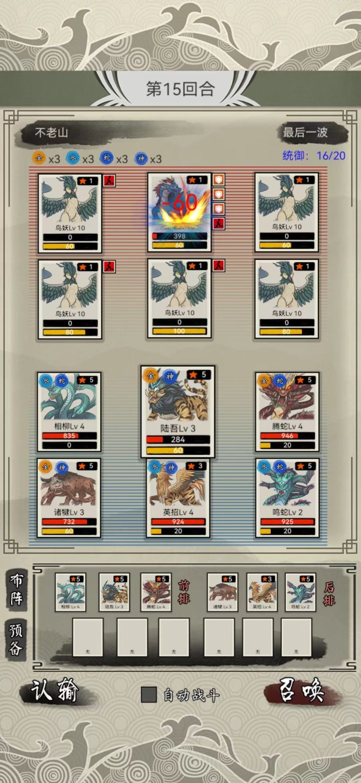 思路是五御数量有限,可以拿三御补个位置,最好凑个羁绊(五星三御完全可以平替一星五御),把多余的五御名额集中在烛龙白虎和九凤身上。 五星选卡优先级(凑齐卡牌以后):烛龙(五星)>九凤(二星)>白虎(3星)>麒麟(一星,可用青龙代替) 三星抽卡优先级(全五星):陆吾>水麒麟(可用九尾代替)>(可代替麒麟凑羁绊) PS:此视频各卡牌属性方便除等级其它全满。