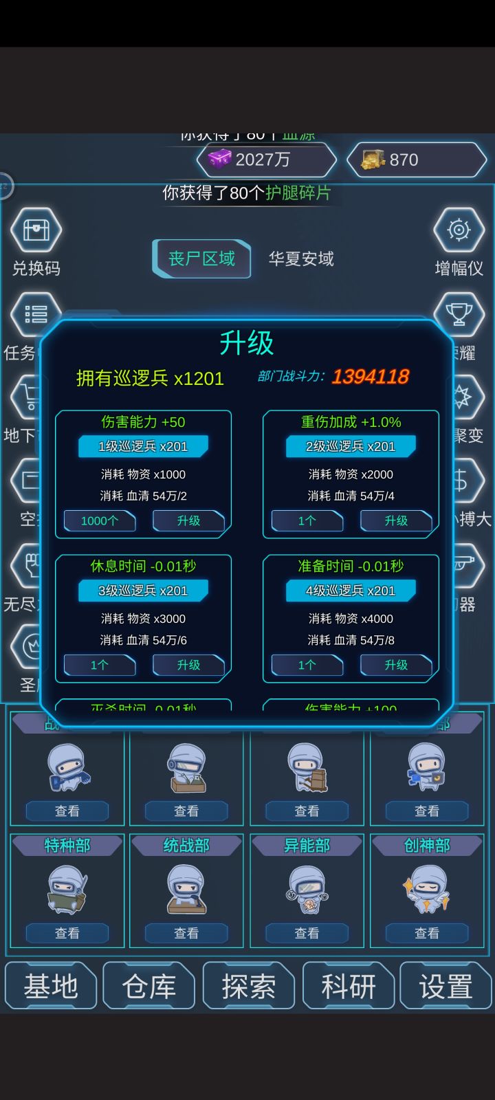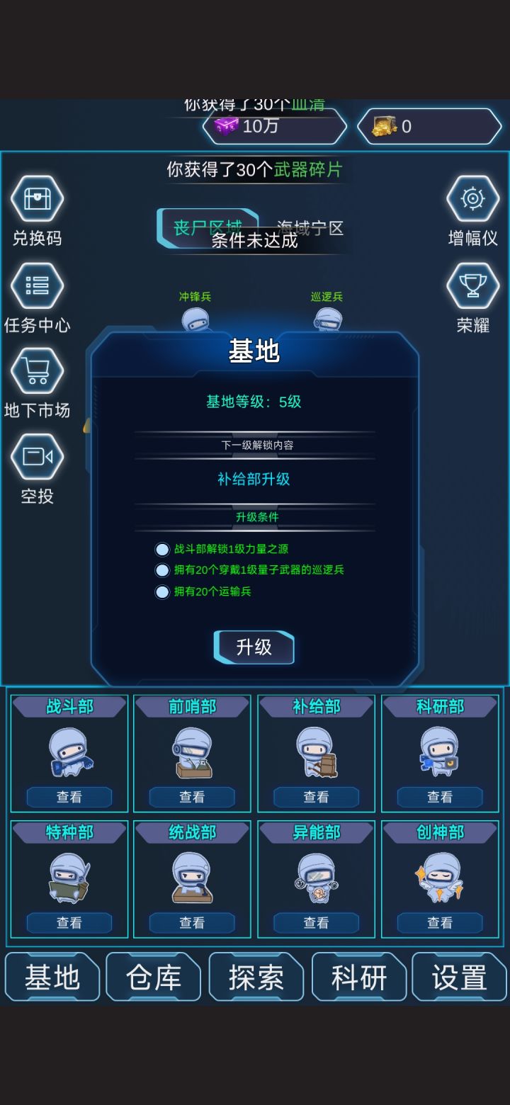 就不能把招募、升级、装备、突变的数量选择统一吗?每次都要一个一个点!尤其是升级一个兵种的时候,升了级又要退出去再进才显示下一级,又要重新选数量!繁琐得要死!直接在主界面上固定数量不好吗?玩了很多这类游戏,没有一个这么麻烦的!而且最大才1000也太少,10000还差不多,要么直接来个“最大”!