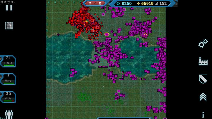 (最高难度)前期小日子把两家都灭了,只剩我了,但是我没有鸟小日子,发展自己的科技,导致我这里一个矿井现在占的话有点麻烦,空军火力太多了呀,一个矿井给的钱太少,还要时不时注意对面,搞没搞核弹或者是激光超级武器。现在迎接了第1波挡下,而且把他们的一个超级武器拆了,暂时缓解了,准备把下面矿井占了,核弹正在建造,准备把他机场炸了,电力设施都造的很分散,而且都是最垃圾的那种,就炸起来很麻烦,没法对他造成重创,除非多搞几个核弹