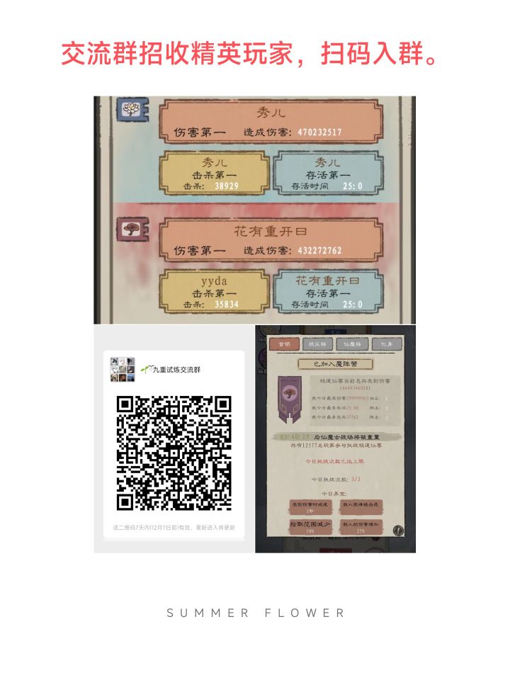 首先出门带的加伤害、弹道+1、弹道速度这3个花,进图升级选装备要能清屏的,看个人喜好带就行,然后选法宝我选了鞋子+乾坤袋+经验书以便快速升级伤害很快就起来了到199满级后找商店分解乾坤袋和经验书拿其它有用的,升级的加点主要还是攻击,血量提升到7000以上差不多就不容易暴毙了,