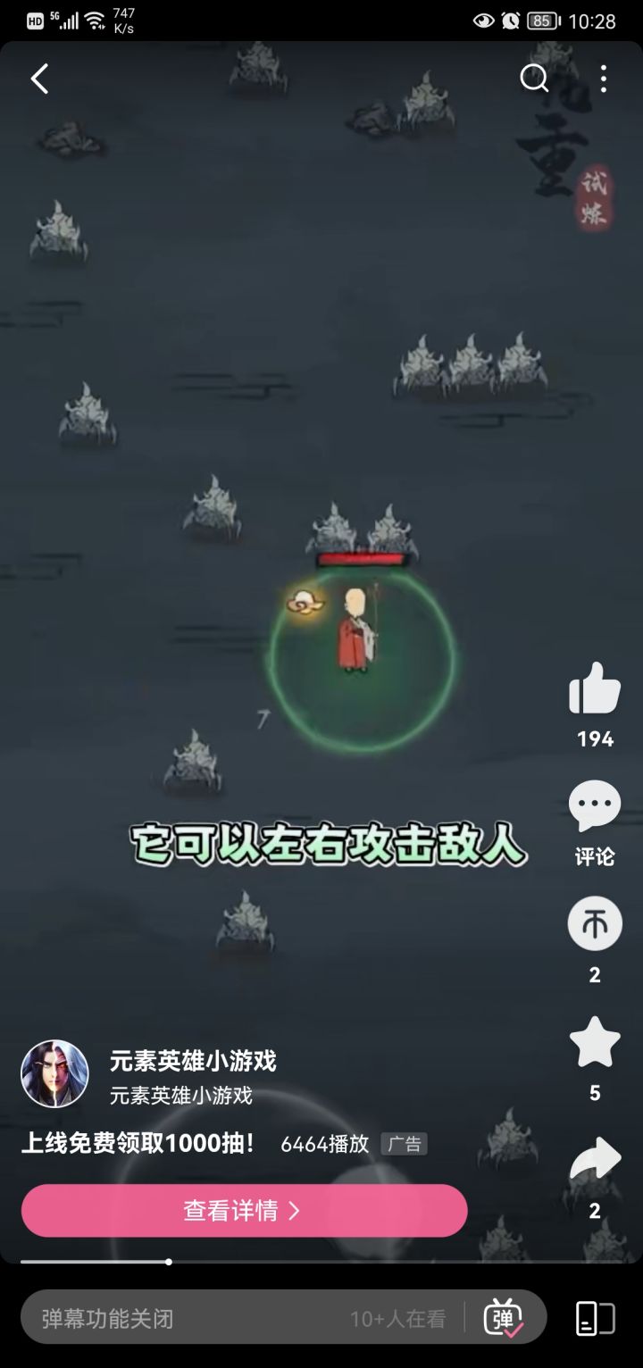 一个抄得很粗糙的游戏1:只需要堆伤害,到后面你怎么也打不过,你就需要靠一天两次的逆天改命2:不需要操作,因为操作也没用,地图无边界,你被一群怪围绕,伤害不够且捡不到经验,饶过一圈包围圈,你就会发现一个新的包围圈,意思就是,你不服不行3:广告有一点点多吧,而且有一些涉嫌涩情的广告总而言之,这游戏全靠伤害,我玩过很多类似的游戏,brotato和吸血鬼之类的,我给他的评价是一个道具少,操作基本无脑的快餐游戏