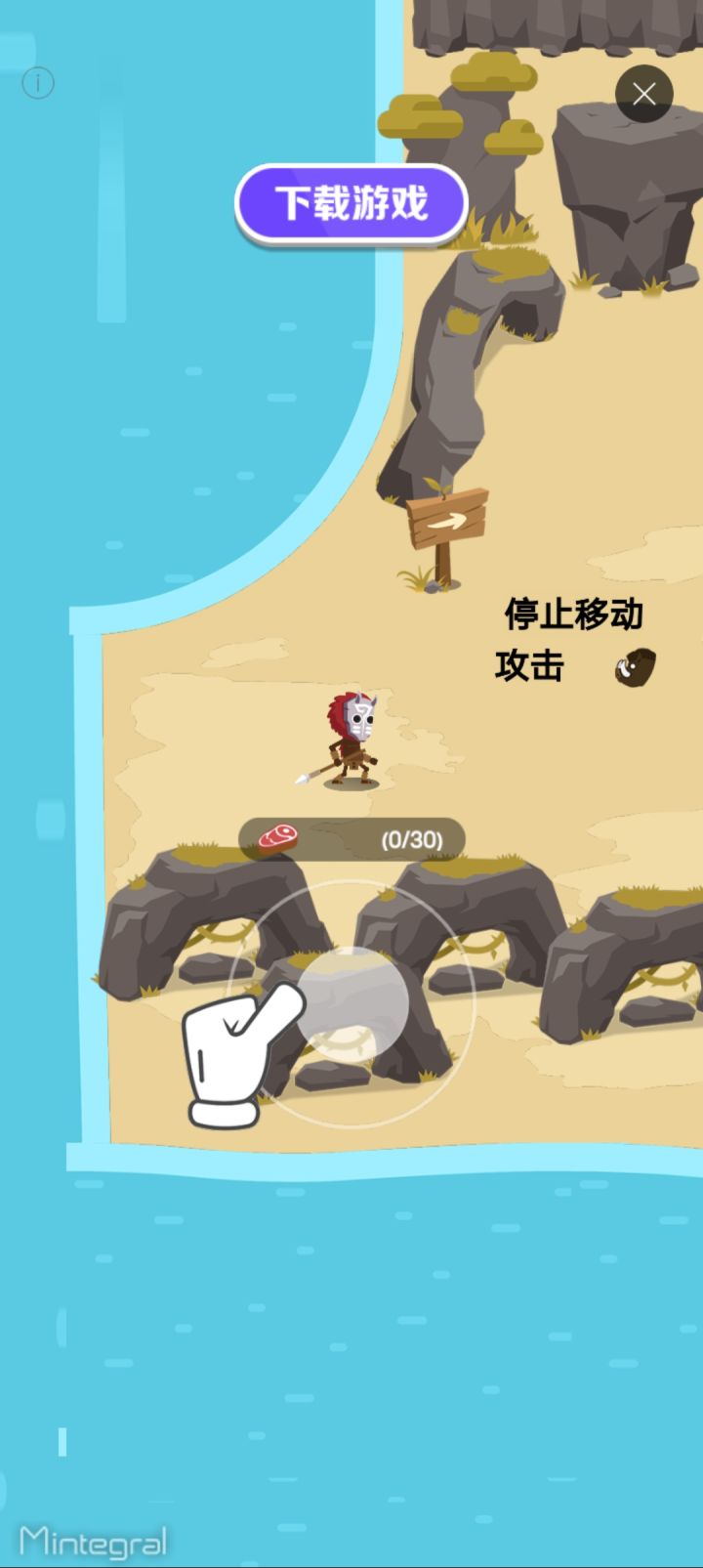 这个广告是我见过最会整活的,如果不按照这个动一下是不会出现关闭键,而且这小游戏是可以直接玩的,也就是——套娃???(玩法和九重试炼差不多,就是一群原始人狩猎)