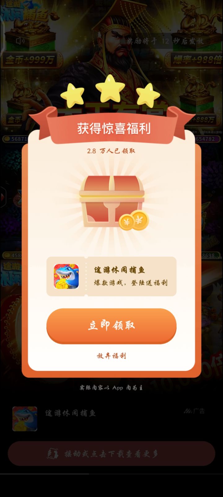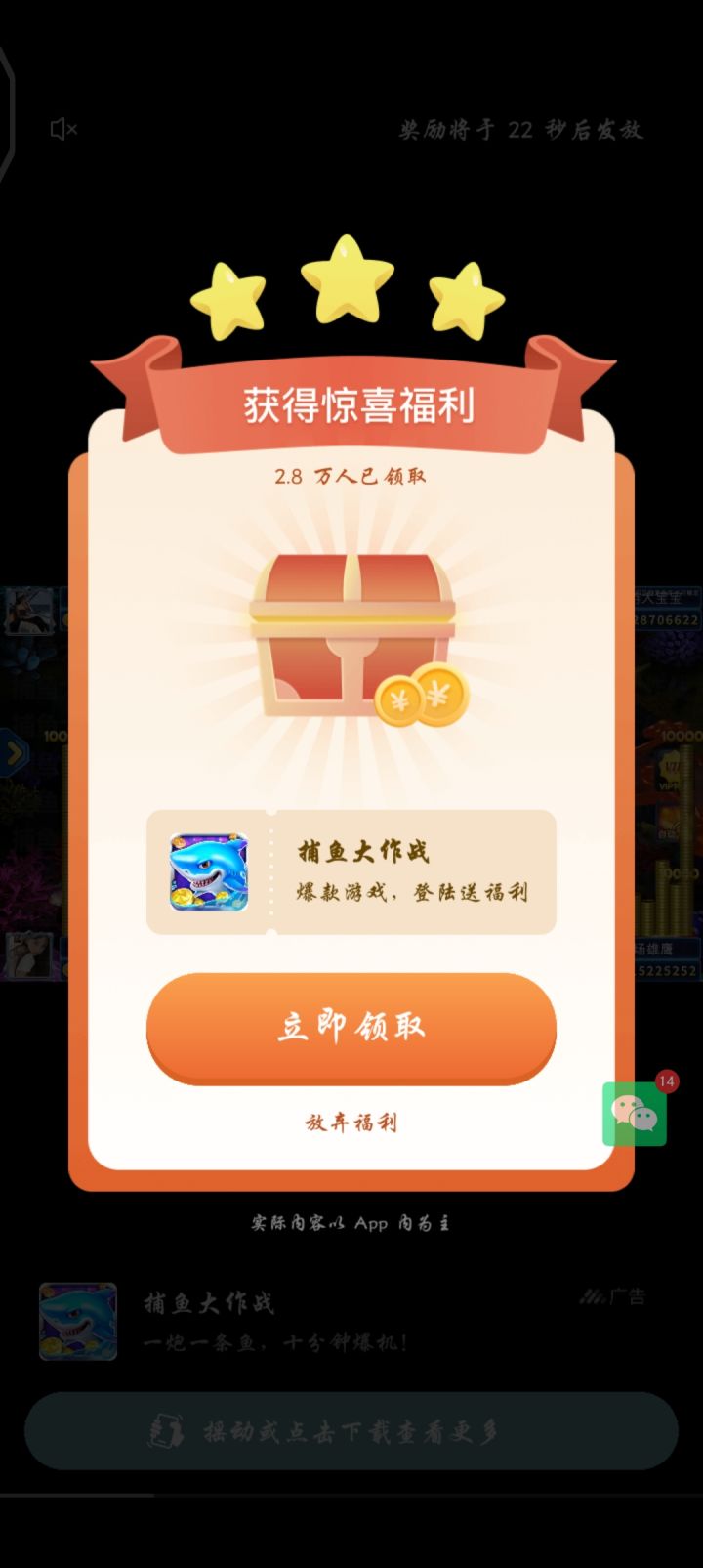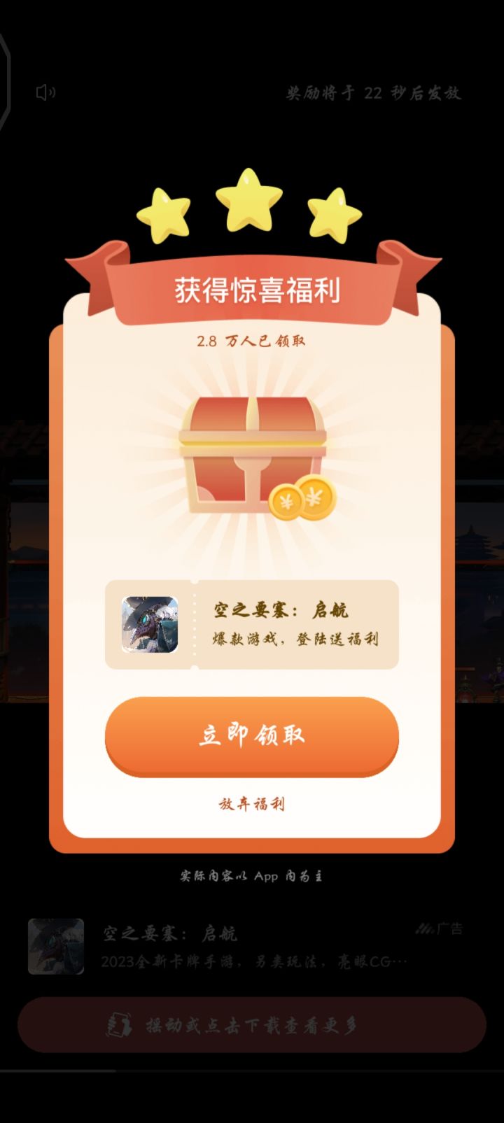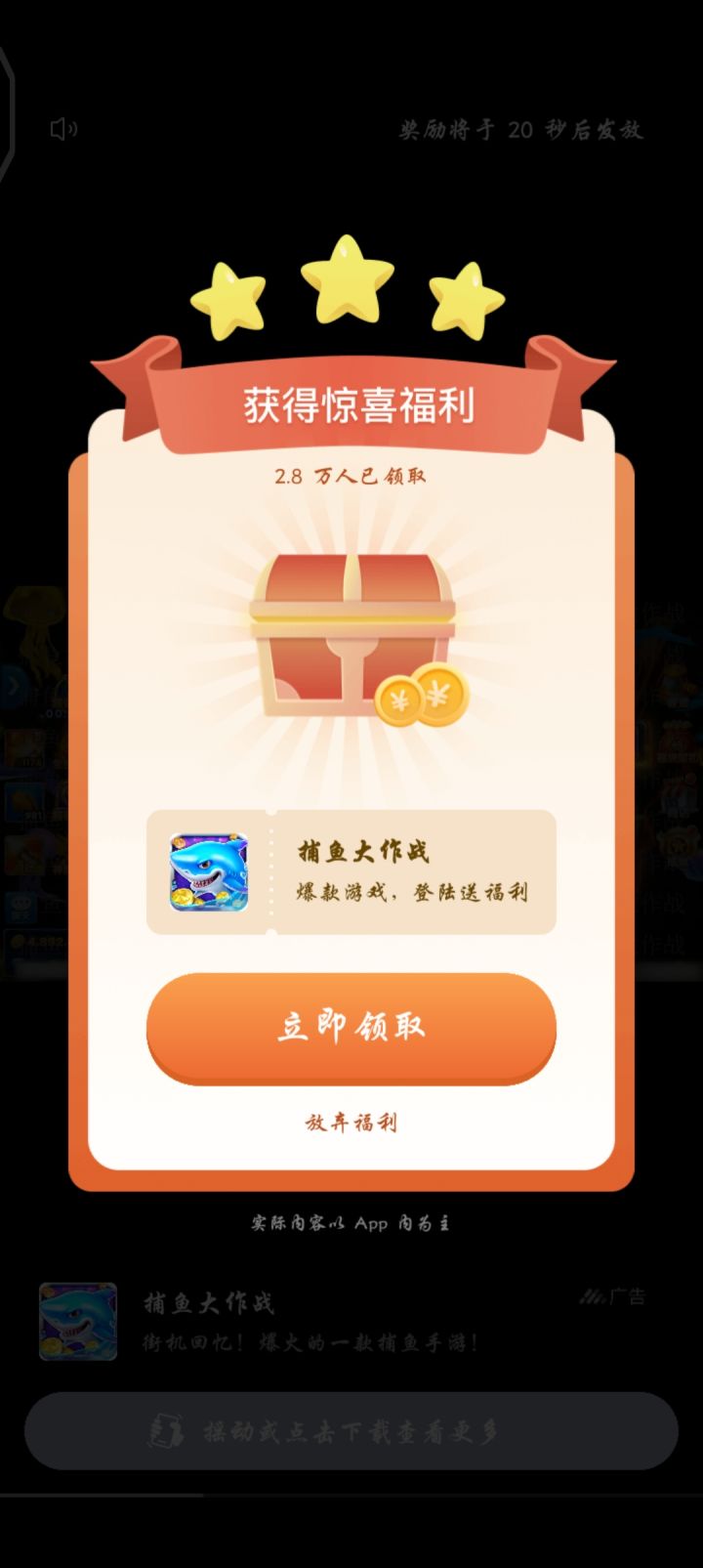 过任务了,看了个广告游戏掉线,啥奖励都没有。真是服了!