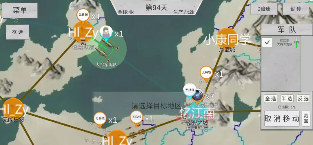 开局先把战备换成生化兵,以免来不及换。 等到下方两个秦兵都离开圆圈的瞬间,全体进攻下方。 这时候,上方的秦和右方的齐会同时进攻你的城池。 不要慌,这个时候你会发现你的远程兵卡在了城池的左下角,秦兵和齐兵会先打起来。而你的远程兵会处于无压力输出状态,你只需要不停的拉扯近战兵就行。 当下方的秦兵一死,立马指挥全体兵会城,不然城池会被瞬间占领。 这个时候金币刚刚到2,立马召唤一个黑色武将的生化兵,最艰难的时刻就度过去了。 剩下的只需要注意两点:1,在统一右边领土之前不要花钱升级城池,钱全拿去招兵,越快统一越有利。 2,不要死守某一处领地,因为前期王剪那一波很难抵挡,即便拿黑色武将都挡不住,毕竟只是a级生化兵。该撤退就撤退,然后再以兵力优势占领回来就行。我中途就是拉扯失误导致黑色将领牺牲了(→_→)