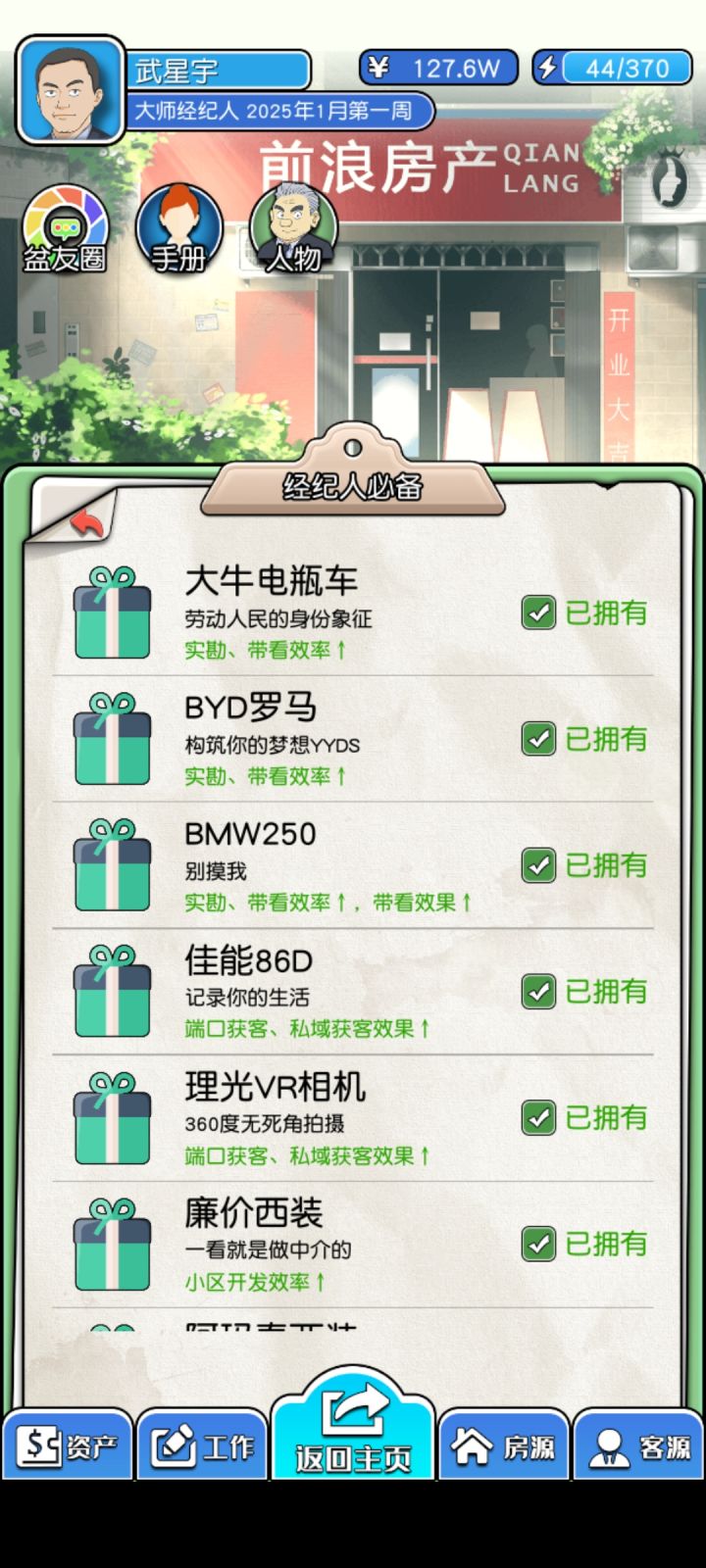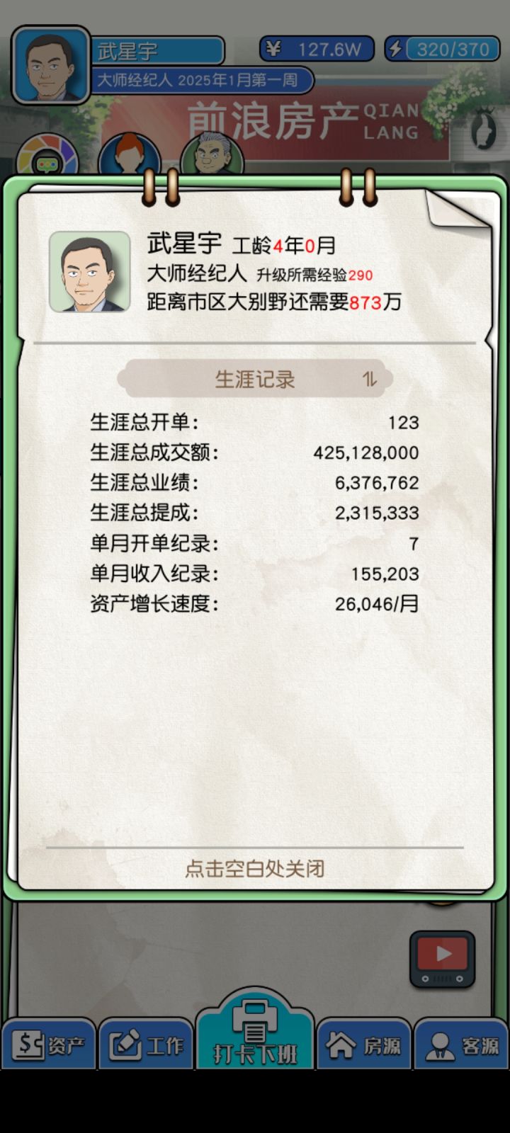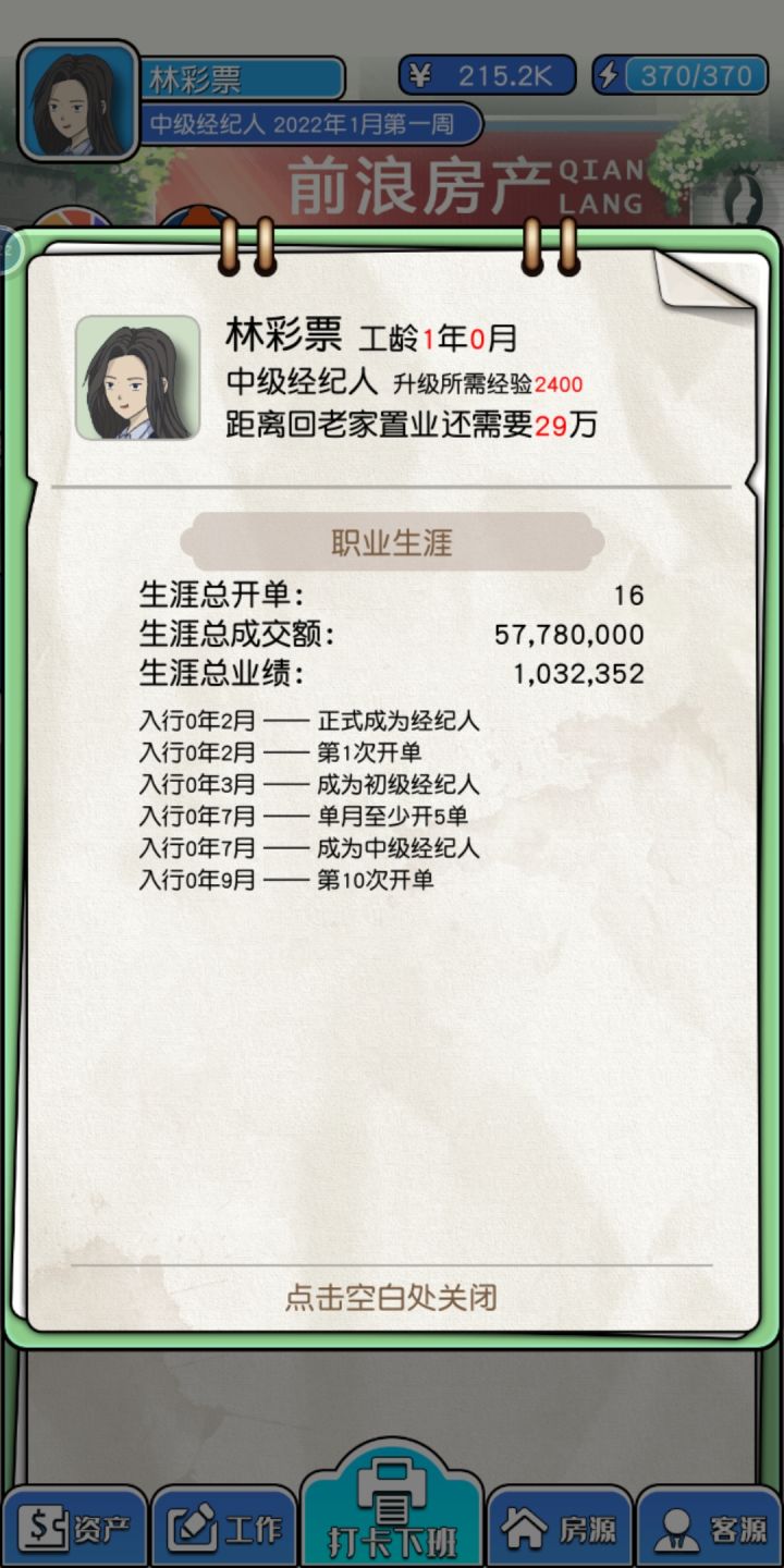 第一,首先要学会solo,就是谈崩之前退出重进!第二,多屯A级房子,个S级房子,因为这类房子大毛病不多,符合销售顾客绝大多数消费者,第三:记住看房子挂牌时间,马上到了就花1千元签独家代理,这样能延续8周时间,省很多体力,并且,屯房子,为后期开端口,69异地,和各端口成相符作用,后续就不用自己找顾客了,第四体力,用在刀刃上将大部分体力用在开放度上,这样每周系统都会给你新房子,这里建议开发度在90以上,s级房子A级房子大概率出,第五,赚钱了,记得买经纪人必备物品,对于谈判有奇效,带看也是如此,第六:顾客:不是所有顾客都是你攻略对象,你前期主攻一房,还是二房,还是三房以上!你必须专精其中一个,屯其中一个,大量A房和S房!如果不是你专精的顾客,10体力你就知道是否你专精房子顾客,不是就转手其他经纪人,懂得分享,及时止损,!我发了这么多字,不给赞,怎么行,攻略1万赞在给你说说怎么谈判效率高! ……………………………………………………………………………………………………………如何不用看广告就能进入下个月的教程,当然开发者也要养家糊口,才能做出更好的游戏,大家要多多支持呦 - TapTap