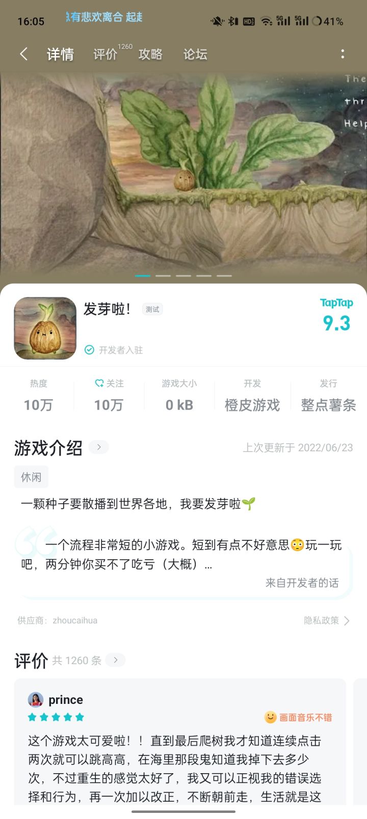 体验反馈:画风令人觉得很舒服,闯关时挺有趣味的,操作上的话,那个拖柄灵敏度没有设置好,灵敏度有点调的太高了,内容上的话,也许可以做一点种子,碰到什么,然后就变成什么来帮助玩家通过关卡,故事性上的话要是能有与玩家更多的互动就好了,期待后续的小惊喜