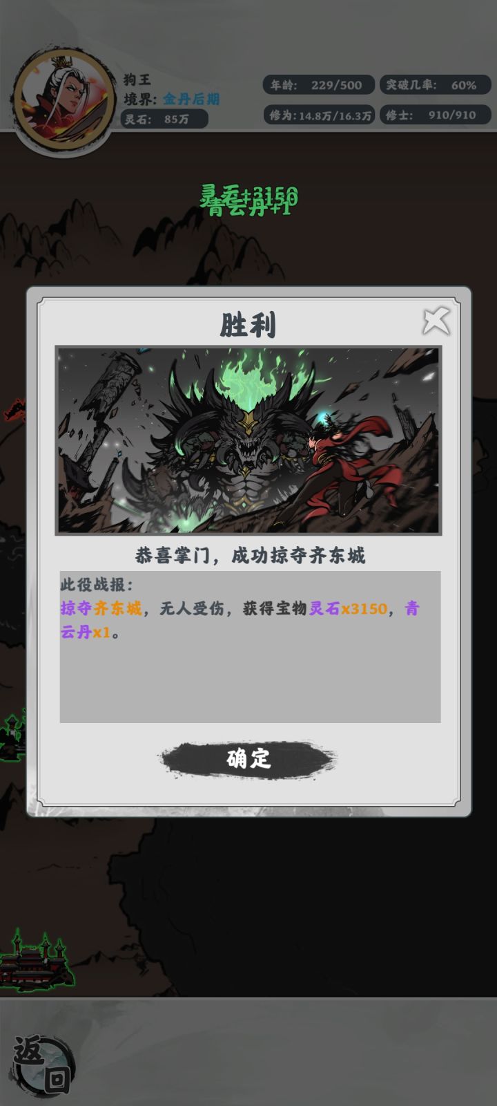 反正就是保证不缺灵石,然后拉几个主力吃丹药到分神,就通关了,新游戏不完善,玩法少。后面枯燥,坐等跟新咯。