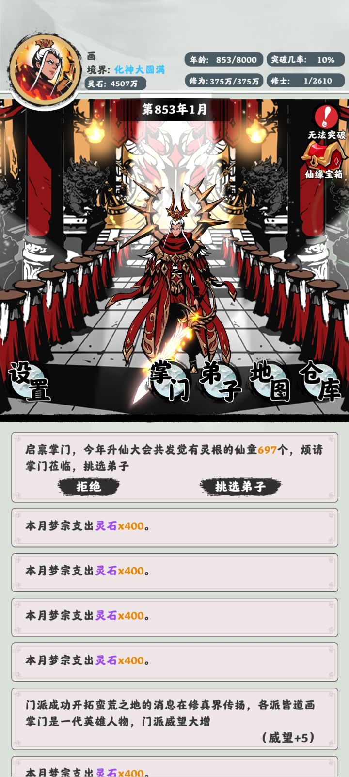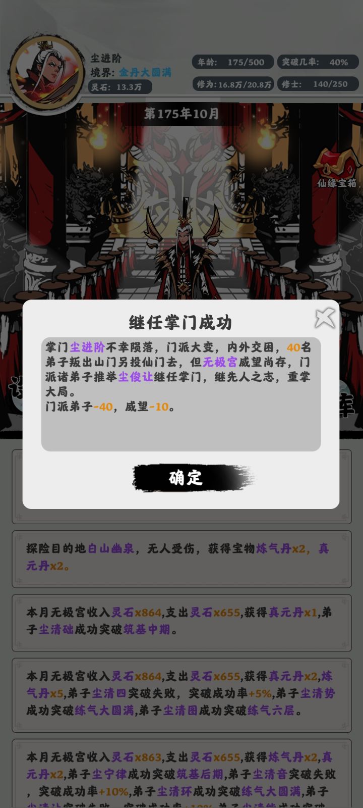 笑死了,更新以后这个掌门经常突破时陨落暴毙,你们故意设置难度也不至于如此吧…一个门派从练气到元婴已经死了不知道多少个掌门了。