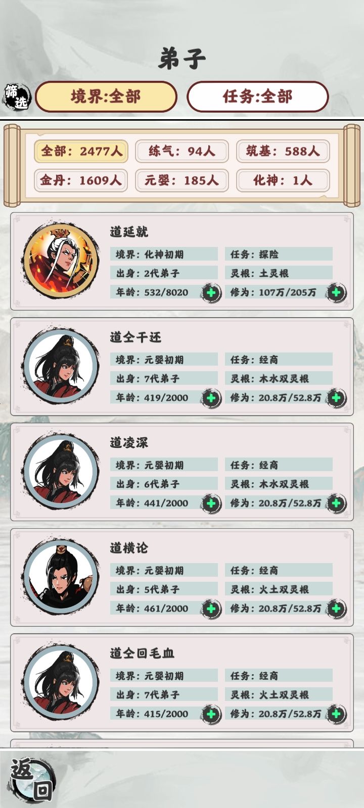 我都全宗500加200的人去经商了,然后还是没灵石,玩个蛋,以前只需要500金丹,不用元婴就行了,现在还是不见底的,不想玩了