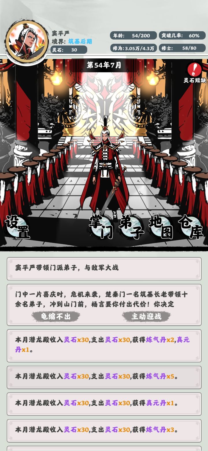 默认弟子排序是修为从低到高,建议增加按年龄、世代排序或者筛选的选项,不然找不到人
