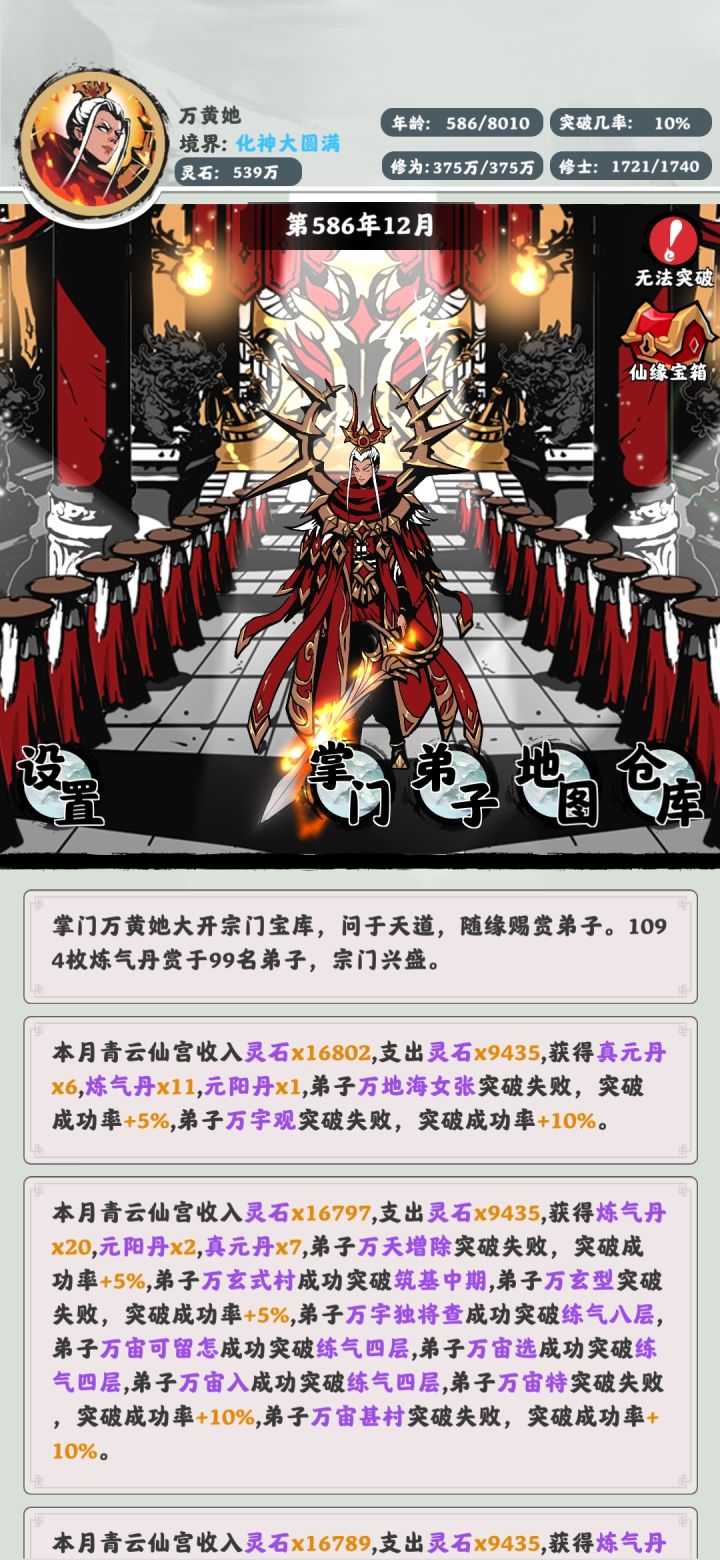 更新一下游戏,我进度没了???我刚到化神巅峰,坐下弟子金丹好不容易一大堆,没了😒