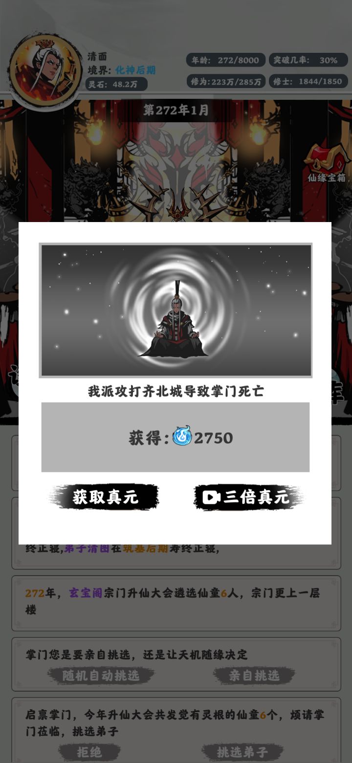 三个化神回打不过一个化神的门派!就离谱死了到金丹后就没什么意思了只能点点点堆数据