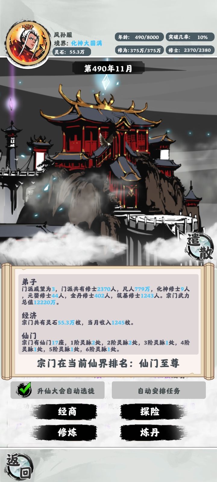 掌门化神大圆满了,,有时会莫名其妙卡住不动,只能退出重进,不知道是手机原因还是啥