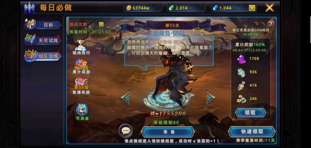 时之扉设计师!!!锋斩的痛,你明白吗?110万战力出头去试试了单挑魔影冰窟副本挑战级。。。。。。——————————————打不过,所以没有视频。