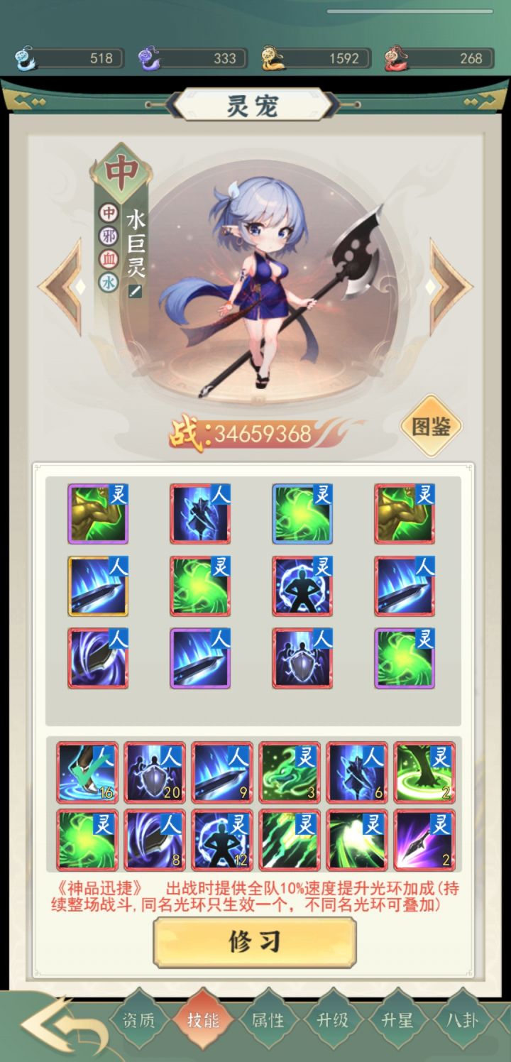 游戏度过前期后,基本每天就是挂机获得修炼资源 对于微氪小氪玩家来说,没有浮云壶除了一些基本属性得不到加成,最主要的还是减伤的确实(最高70减伤),建议法则优先点黄色,每天的坠星海掠夺不要忘记,碰到坐化玩家,一次掠夺收益很高 宠物技能除了主要的攻击速度光环,可以打几个灵防技能,提高宠物生存能力 法宝碎片建议优先换仙灵娃娃,对属性加成较大 仙界矿优先占领蓝色矿,4小时一次,2次收益会高于8小时的紫色矿,以及10小时的红色黄色矿,晚上睡觉前再战力高级别矿 人物技能搭配魂2魔4仙4魔2,魔4技能排第二可以秒对方宠物,让后续技能输出对方人物,魔2技能不是五行伤害,可以出发3特效 最后祝大家仙路顺畅🙏