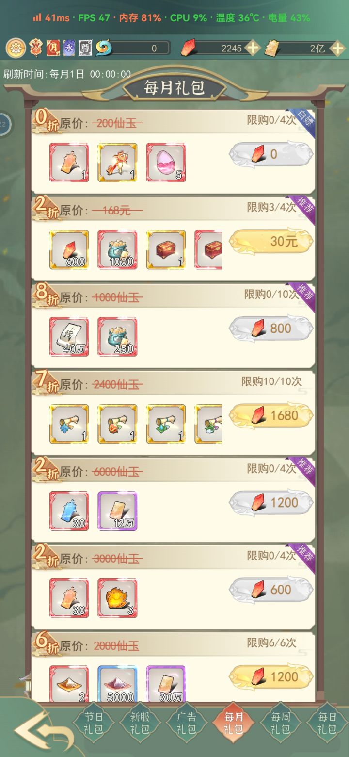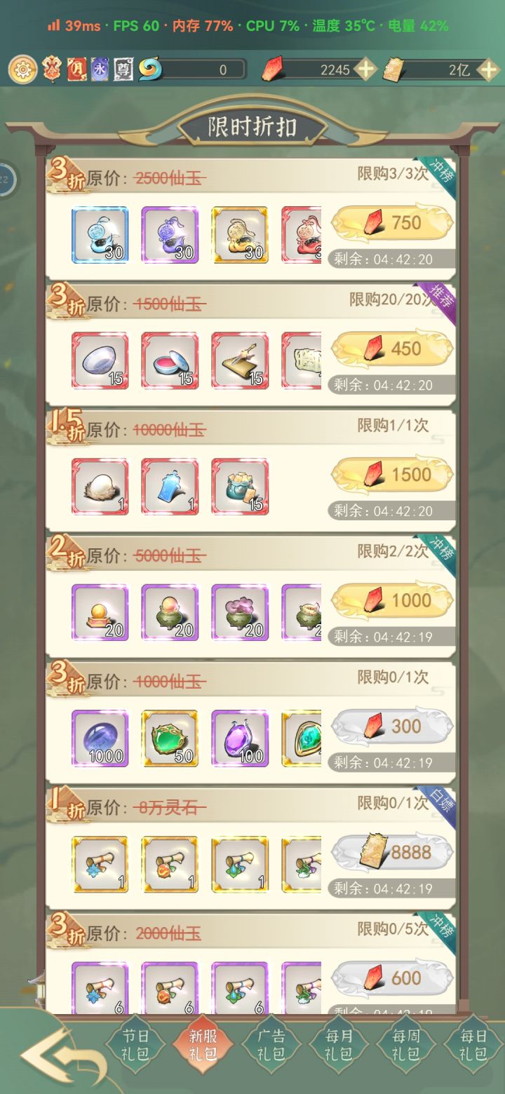 1抢飞的话要去游商看情况买一些青龙,新服礼包钥匙必买,把每周800的钥匙也买上,天火琉璃建议买两个,氪佬随意,抢飞的话,第一天一定要打好基础,升不动境界了再开次元,前几天斗法都换青龙,游商好感礼物全买,全力培养加攻击的一个伴侣放在今雪堂 2灵界要合理使用灵石,上灵界因为用灵石购买书页会非常缺灵石,优先升攻速血就行 长久玩下去练丹等开出月品一直练满福源,然后等福源天象再开箱 想当个屯屯鼠就等开服30
