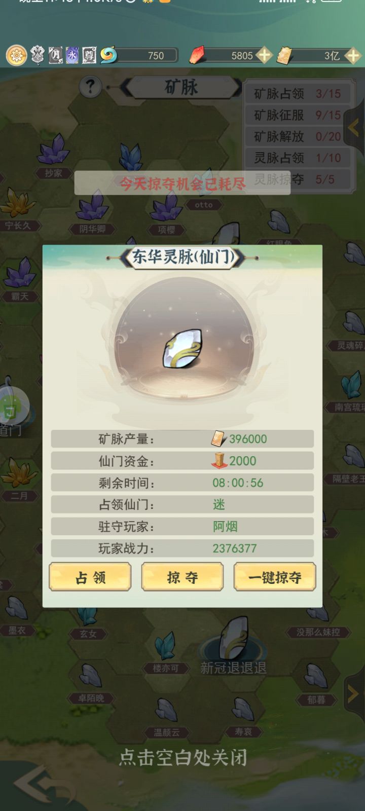 日常的灵脉掠夺完成不了,掠夺失败一次成功一次剩下的一键,五次都用完了,为什么没有完成?