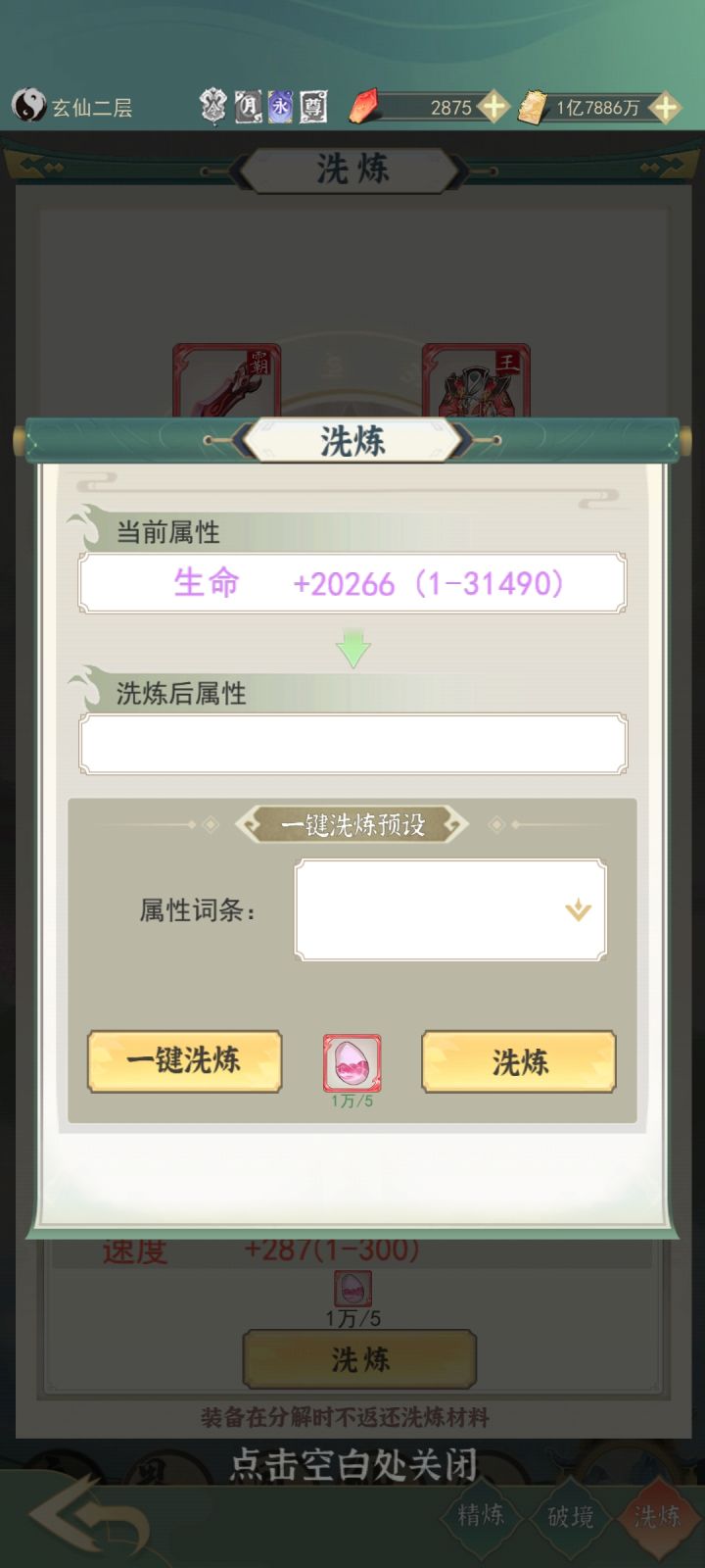 一键洗炼预设能不能加一个词条颜色预设,好满足我词条全红的一个小目标。