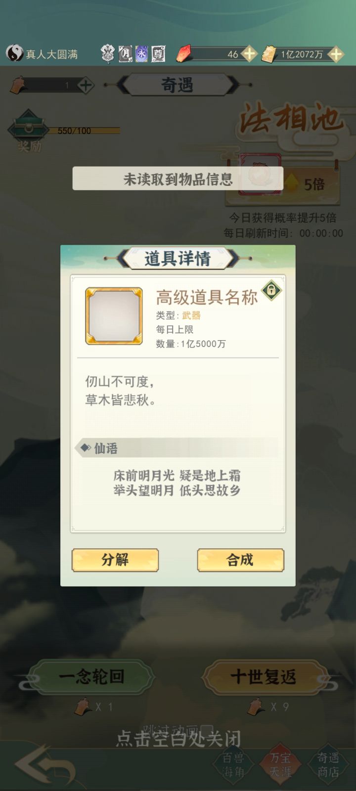 能不能取消开书页的秘境,我升到金仙上去咔咔咔点15分钟,晚上回档了。特别傻的一个玩意儿,花五百玉直接拿书都行