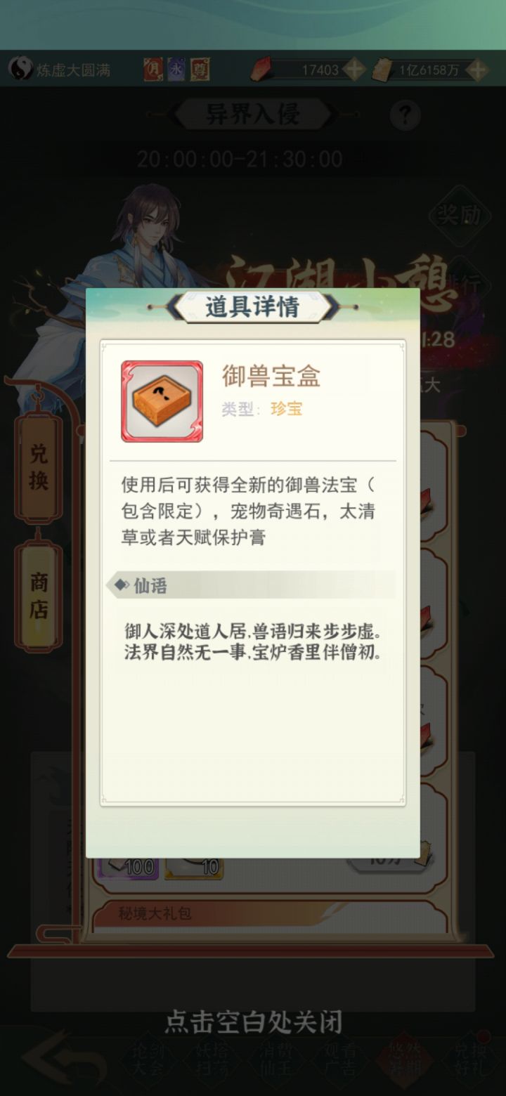 今晚活动商店买的御兽大礼包御兽宝盒打开全是淬炼法身的东西???