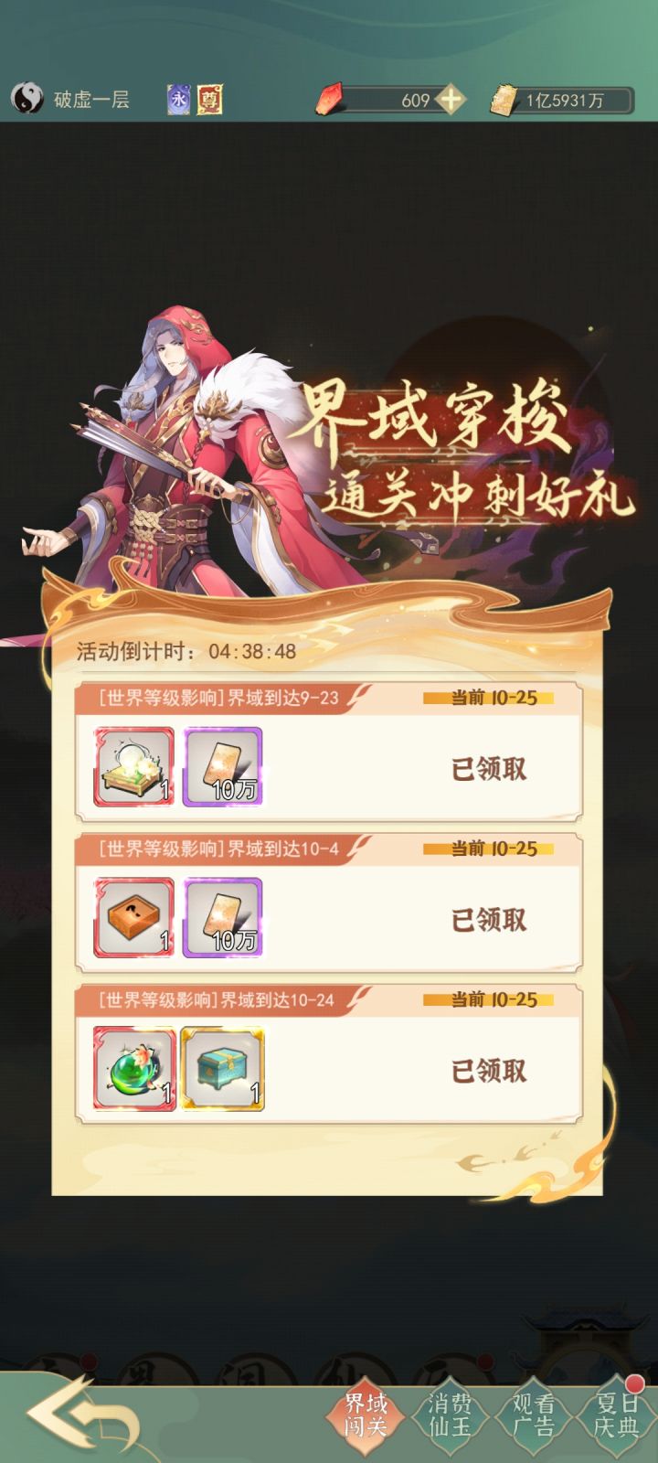 界域到达10的奖励我没领取,显示已经领取