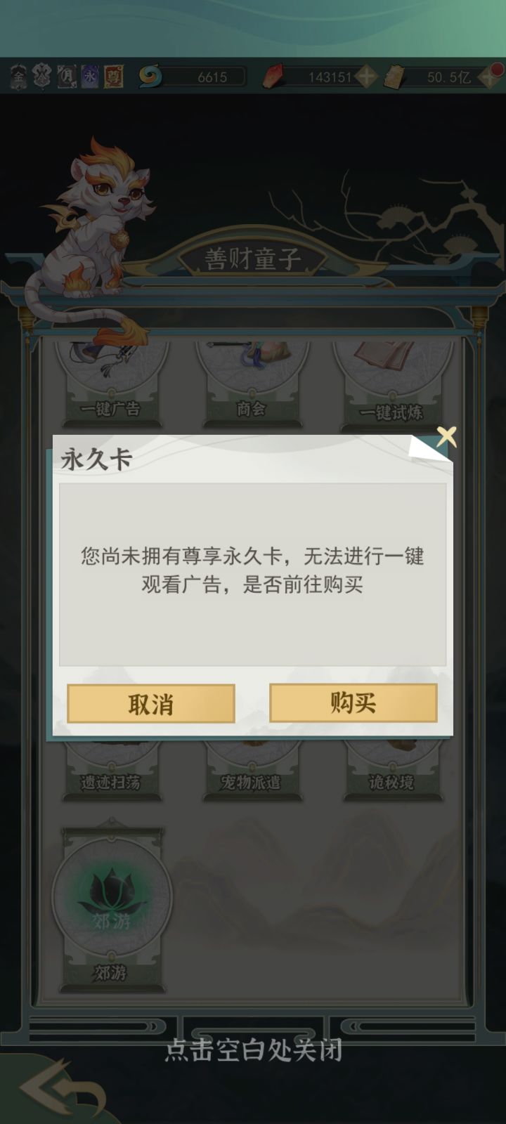 新出的那个郊游扫荡点了之后就弹出来说让我买尊享卡,我看永久卡里面说了开永久卡就能一键郊游啊???