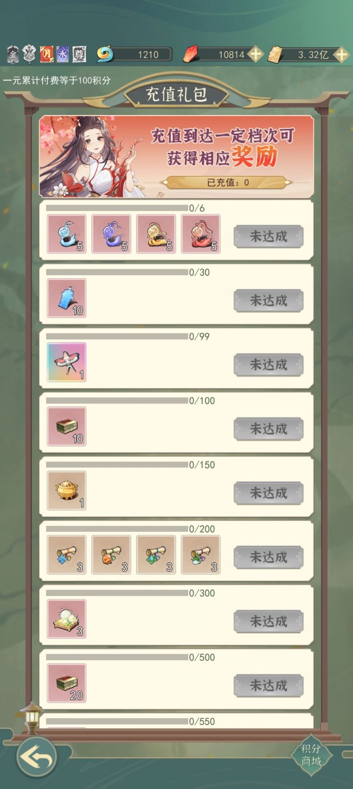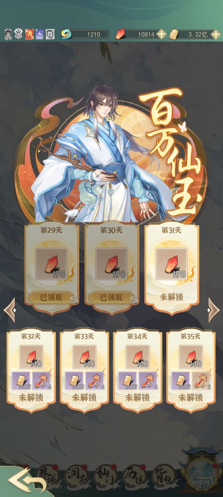 首先对于玩过类似的放置修仙游戏的玩家,对于这个游戏应该是很轻车熟路的,境界,修为,法宝,宠物,依然是离不开的玩法方式。初入游戏,首先想玩的舒服的话,28永久卡是一定要氪的,次元扫荡,派遣,郊游,没有永久卡很麻烦。永久卡一个月后免费白嫖。其次是双卡,战令以及基金,这个大家都很好理解,修仙嘛,没有资源怎么行。每天有三次红包可以领,大概100代币上下30天可以把第二个月月卡白嫖出来。讲一下萌新
