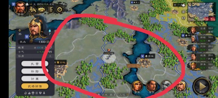我圈起来的里面有个白色圈圈,那个就是武将移动范围,超过就是取消移动指令了