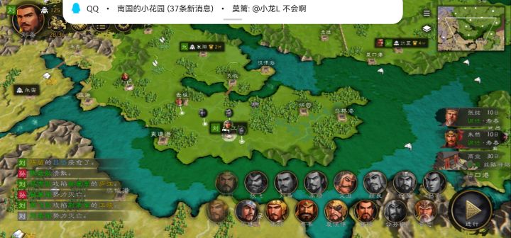 丢块骨头你们三个挣吧😏笑看狗咬狗(推荐大家玩困难的ai主动性很高,之前打普通的完全就是个人秀)不说啦,刘表又来打我新野了。最后附上天下大势图