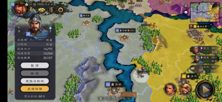 14-运输AI有点呆,广陵运到下邳直接走直线距离呆在河边不动了