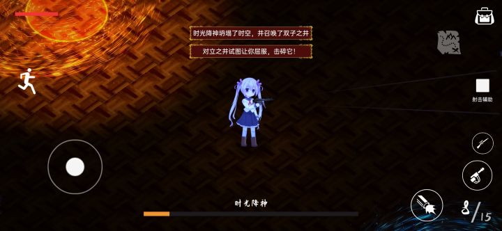 boss无ak打法武器:蝶舞,到此为止(剧情给)过去到柱子旁,他会有个炸同时出现一只跳过来的狗子,反向跑躲过炸弹,狗子会被柱子卡住,右边还有一个拿刀的玩偶,拿到此为止都是一枪秒,大狙用来清小怪(铁皮要两发)听钟声响几下就是几点钟方向,把对应方向的时光之心打爆(下图标号以此类推)成功两次会参透时间本质,然后蝶舞一个多弹夹打到第二形态,这时候看清楚提醒,我截图显示的是对立之井,所以要打右下蓝色的井,反之打红色,成功之后出来给时光降神补枪