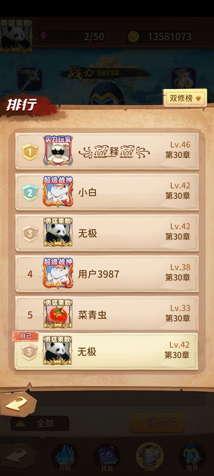 个人游戏(双修模式)建议:1、不同关卡奖励不同,关卡越高奖励越多(目前第一关和第三十关通关奖励无区别)。2、增加完美通关后扫荡功能(需要观看视频增加扫荡次数),可以提高免广告卡激活率,提高上班族游戏玩家积极性。3、增强前排战士属性或者抗性,增加游戏变化,更具有可玩性。4、增加变速功能,和主游戏一样。主游戏建议:1、增加好友功能;2、加强聊天功能;3、增加合作模式;希望游戏越来越好
