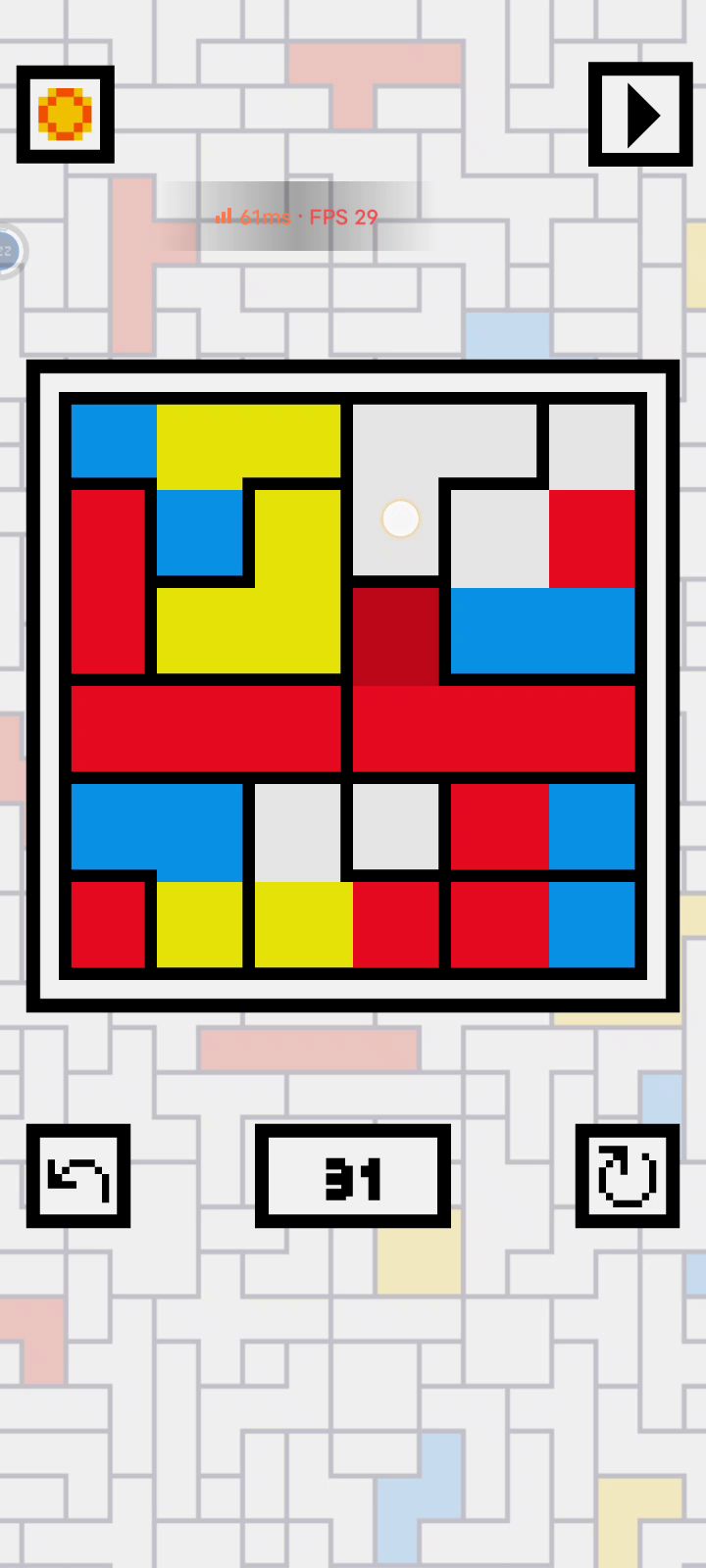 非常棒的一款小游戏,难度也适中。只要掌握了规则就能玩的很顺畅。个人理解的规则:①色块只能向相邻的格子移动②每次移动色块都必须要满足“清空格子”或“填满格子”,两者都不满足就无法移动色块。例:A中色块向相邻的B中移动,但此移动无法将A清空,也无法将B填满,则无法移动。希望未来能更新更多关卡。