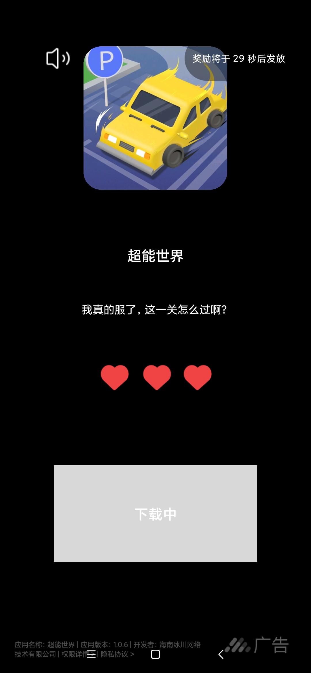 最恶心的广告了,已经被他坑了几次。大概率出现在滑稽币领取。时间不会动,点击就下载。只能关闭游戏。这三个广告系统让我浪费了太多时间了,重复看了太多次。老迈,我可以发电给你,给安排下无广告款吧。
