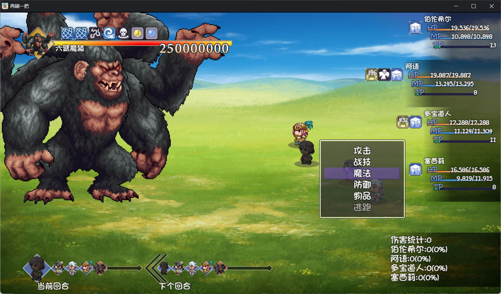 开局是这样的阿语行动后荒芜没了第二回合开始是这样的然后。。。暗言术痛去世,第三回合我已经放弃治疗了!全是0(打不过,但是木桩)