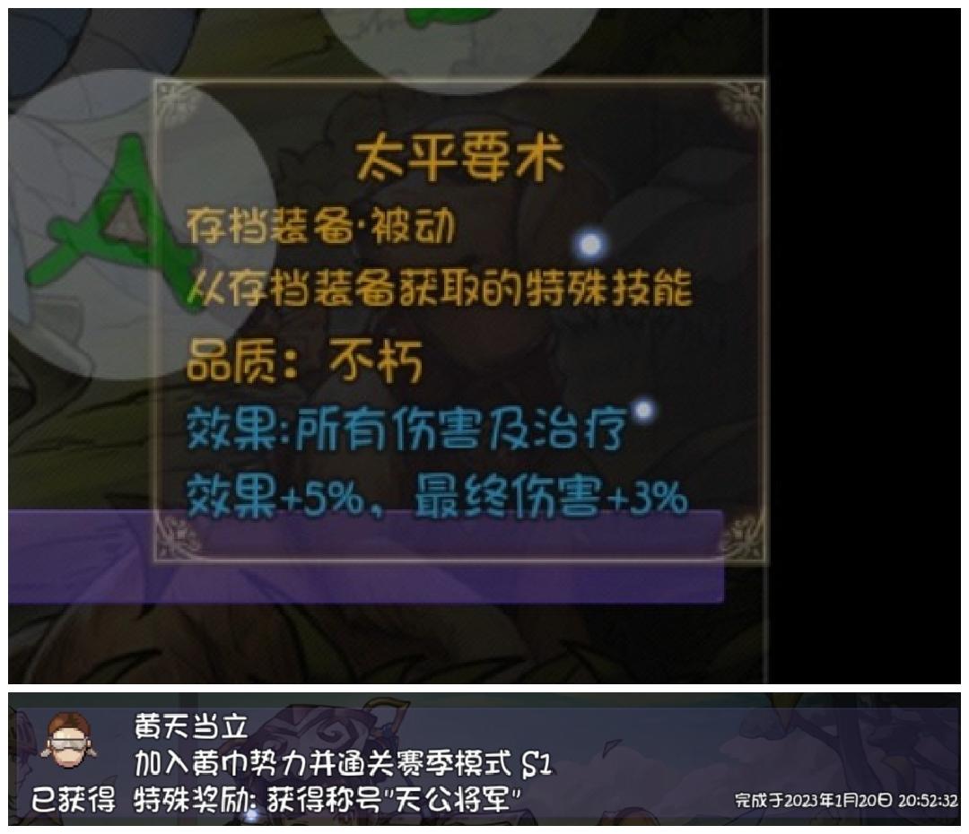 很好奇各个势力通关之后奖励的称号和被动是啥。大佬们众筹一下我出黄巾的(称号没实装)