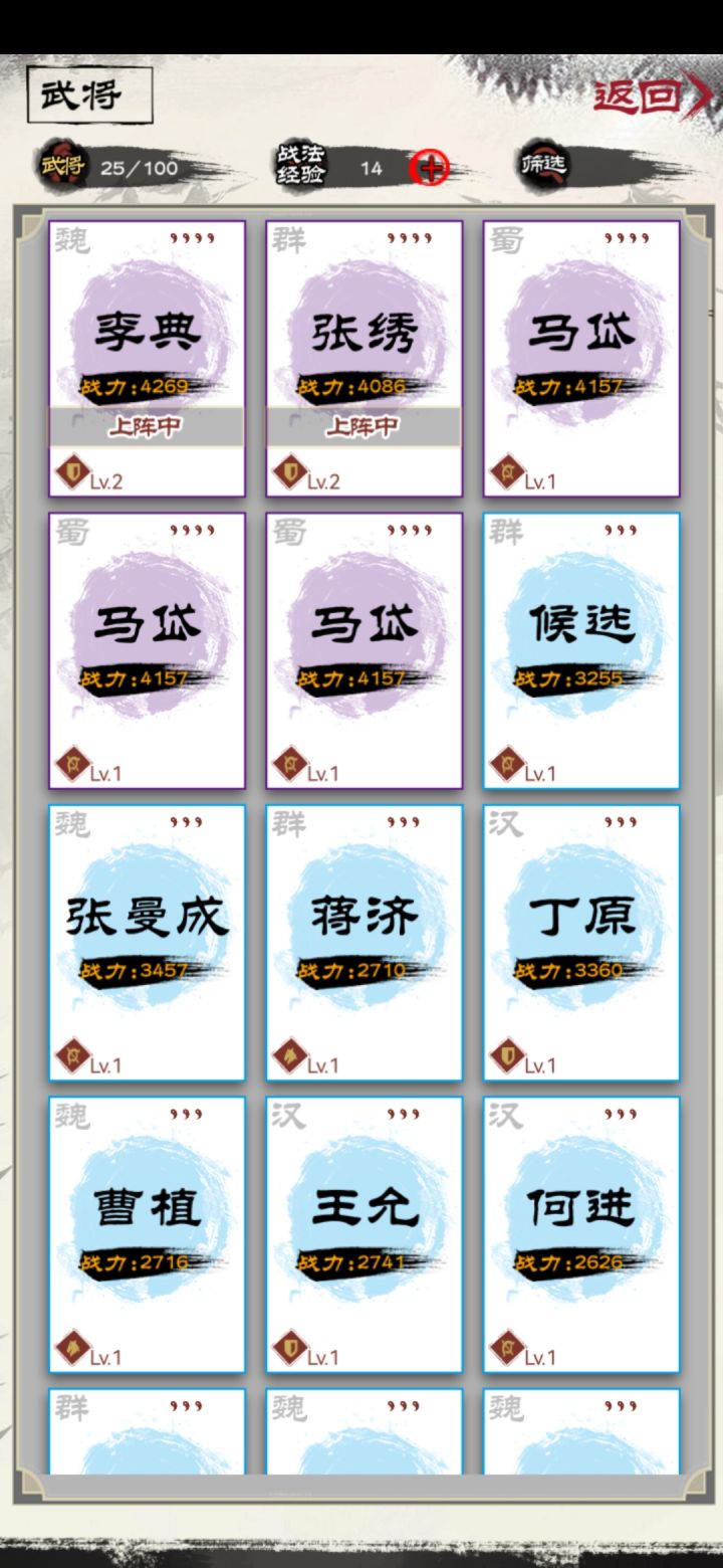 五十多级了,被四十级boss吊打。这英雄强度真不合理,战士技能加成计算大大的有问题,除了马超马云禄,基本技能都没有随着武力提升伤害增加,真心希望策划改改好吧,我十级赵云技能一级,打出伤害是每下攻击一百多,现在五十多级赵云技能八级,打出每下二百多伤害,我timi是真的醉了。