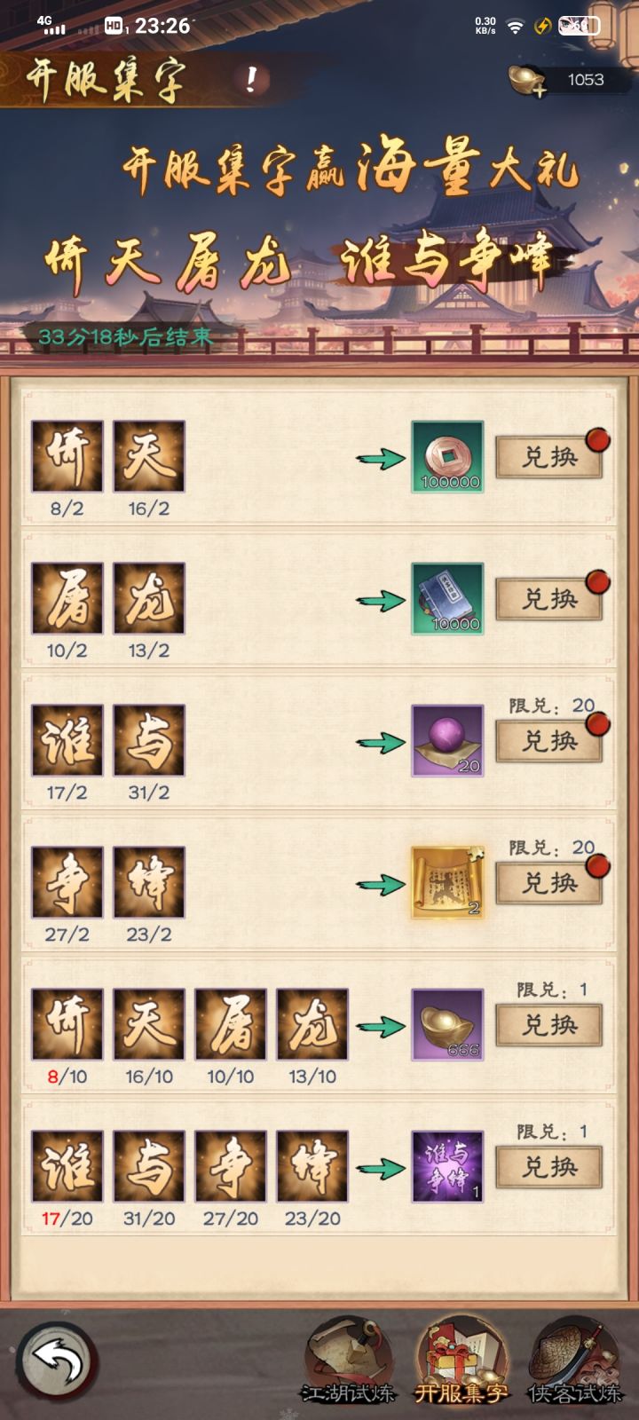 集字活动不能改改? 出个字之间互相转换有这么难?哪怕2换1,出不来称号真的恶心人