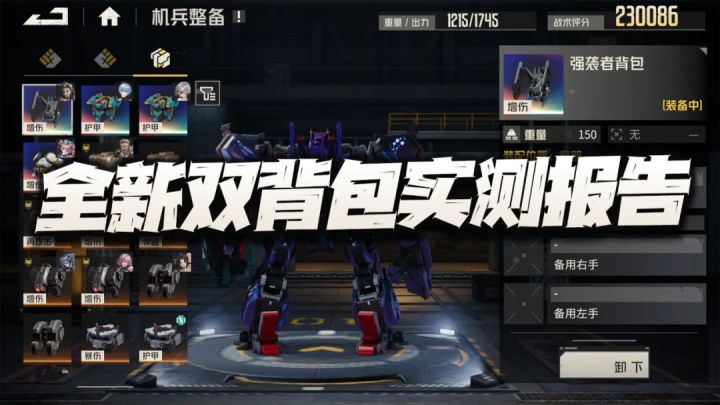 大家好,我是一夜未眠的何二维一。今天的攻略咱们来把新版本即将上线的两个全新背包的实测报告给做了,其实过去的很多符合背包由于普遍都比较好理解,因此我们也没怎么专门开过背包的攻略贴,不过此次的背包,尤其是“强袭者背包”倒是非常有意思的一个设定,接着咱们就来细细聊聊此次有关背包的评测内容。首先这个强袭者背包首次出现是在去年的“异鸟代码”活动中,当时是由珂赛特驾驶的“蓝色影子兔”机兵上佩戴的这个背包,具